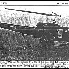 As October dawned, the 3/187th forward command post continued to operate out of FSB Patton II. On October 6, 1968, Bravo Company enaged in two firefights - the second being of an extended duration. As a result, Bravo Company lost three men killed in action and a fourth soldier killed on October 7, 1968. On the 7th, Delta Company was inserted in the vicinity of the contact and along with Bravo Company, engaged in additional, intense firefights well into October 8, 1968. Additionally, on the morning of the 8th, the 3/187th was scheduled for transport by convoy back to Cu Chi Basecamp. The Rakkasans were headed to Phuoc Vinh to prepare for movement to the I Corps Tactical Zone. The morning of the 8th was spent breaking down FSB Patton II in preparation for transport. However, the 25th Infantry Division convoy and escorts were delayed, leaving the Rakkasans at FSB Patton II vulnerable. In the early afternoon, the broken down fire support base received incoming mortars rounds and several Rakkasans were wounded. The much delayed convoy finally arrived just before 6:00 PM and the Rakkasans loaded into the beds of the trucks. At the corner of HWY 1 and 7A, the convoy was ambushed. A total of four Alpha Company soldiers and one Medic were killed in action and many more wounded. Close to midnight of October 8, 1968, all elements of the 3/187th closed Cu Chi Basecamp. Around the 10th of October, the 3/187th returned to Phuoc Vinh Basecamp and began packing up in preparation for the move to the I Corps Tactical Zone. The move to I Corps occurred over a few days, but the 3/187th officially reported to Major General Zais, the 101st Airborne Division Commander, on the tarmac at Phu Bai on October 18, 1968. Around the 20th of October, the 3/187th moved to FSB Birmingham where they remained until their move to Camp Evans. According to "Operational Report of Headquarters 3d Brigade, 101st Airborne Division for Period Ending 31 January 1969", 3rd Brigade was alerted on October 26, 1968 for movement from Camp Eagle to Camp Evans. The 3/187th began this movement by CH-47 and convoy on October 30, 1968, closing Camp Evans on November 1, 1969. Ten Rakkasans lost their lives in October 1968: Stephen Dale Perry (Bravo Company), Richard Durand Stevens (Bravo Company), Franklin Denis Tinsley (Bravo Company), Bruce Gilbert Brown (Bravo Comapny), Sherman Alvin Furrow Jr. (Alpha Company), Eugene Hingleton Jr. (Alpha Company), Lucas Herrera Rodriguez (Alpha Company), Robert Lee Urban (HHC Medic), John Albert Giacone Jr. (Alpha Company), and Samuel Mena (Charlie Company). One Rakkasan was awared the Distinguished Service Cross for actions the 7th and 8th of October - David Kasun of Delta Company.