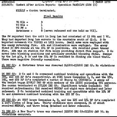 Operation Republic Square wrapped up on December 6, 1969. Operation Randolph Glen commenced the following day on December 7, 1969 and continued through March 31, 1970. The mission of Operation Randolph Glen remained the same as Operation Republic Square and operations continued in Phuog Dien District. According to the "Combat After Actions Report: Operation Randolph Glen", Headquarters, 3rd Battalion (Airmobile), 187th Infantry, the mission was to: "Conduct offensive operations emphasizing reconnaisance and ambush in order to deny the enemy access to the populated areas and support the GVN accelerated pacification program while upgrading local GVN forces through training and combined operations", page 3. According to "1969 Historical Summary" of the 3/187th, "Training of PF platoons and PSDF began during the middle of December when mobile training teams were formed from the three Battalions of 3rd Brigade and sent into the district under the control of the 187 Inf.", page 14. December 1969 also marked the third Christmas that the Rakkasans spent in the Republic of Vietnam as well as the second full year of combat operations. No Rakkasans lost their lived in December of 1969.